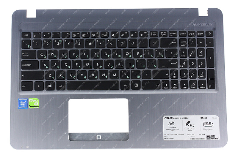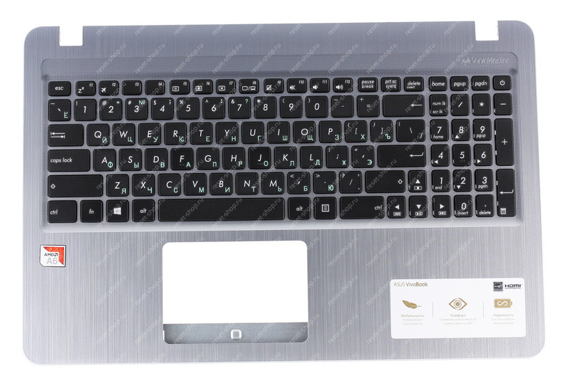 Клавиатура для ноутбука Б/У ASUS X540UA топкейс темно-синий, клавиши черные, без тачпада