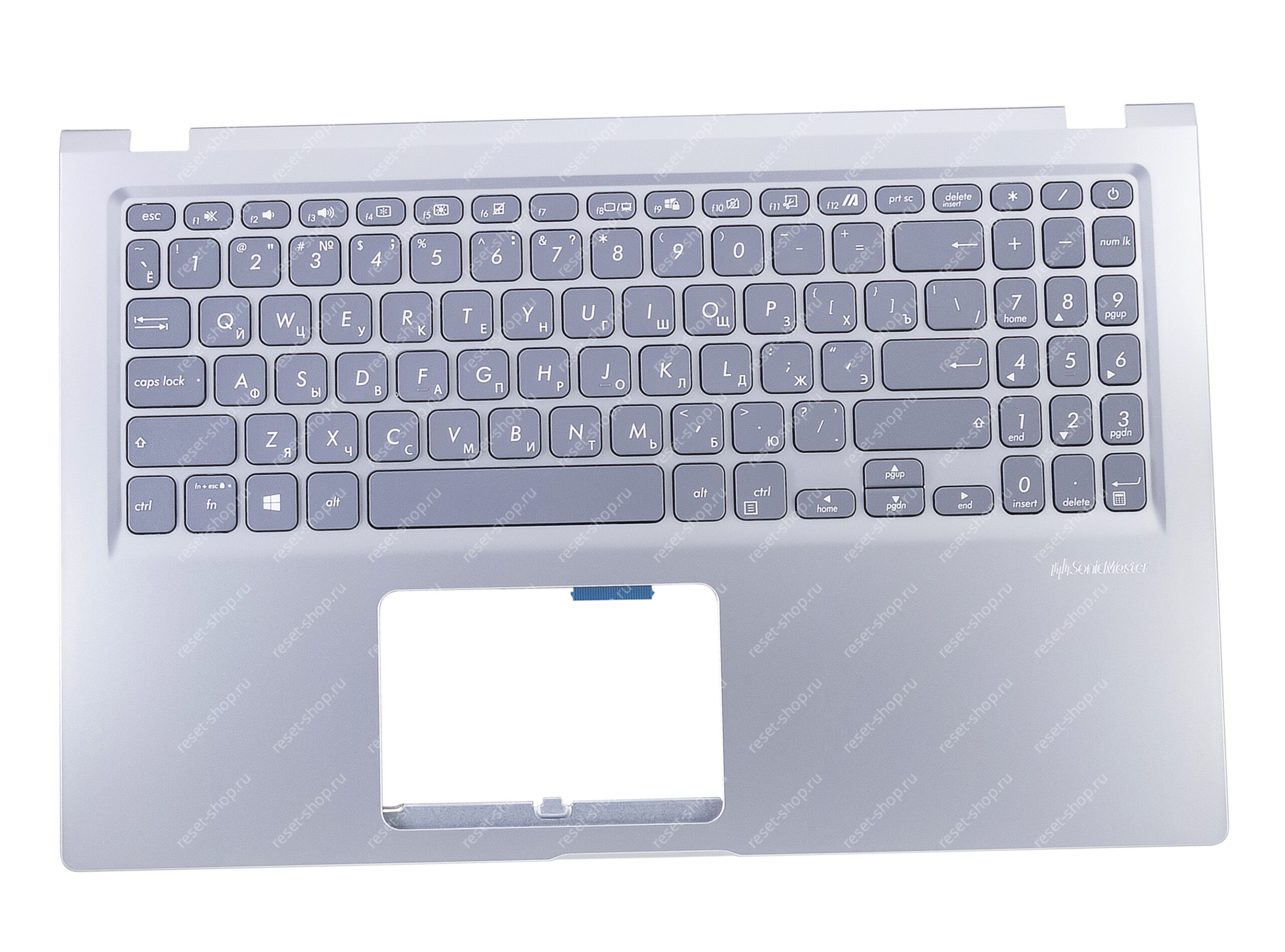 Клавиатура для ноутбука ASUS X521EA топкейс серебристый, клавиши серебристые с подсветкой