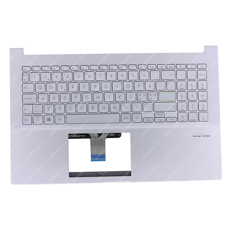 Клавиатура для ноутбука ASUS X521IA топкейс серебристый клавиши серебристые с подсветкой НОРВЕЖСКАЯ