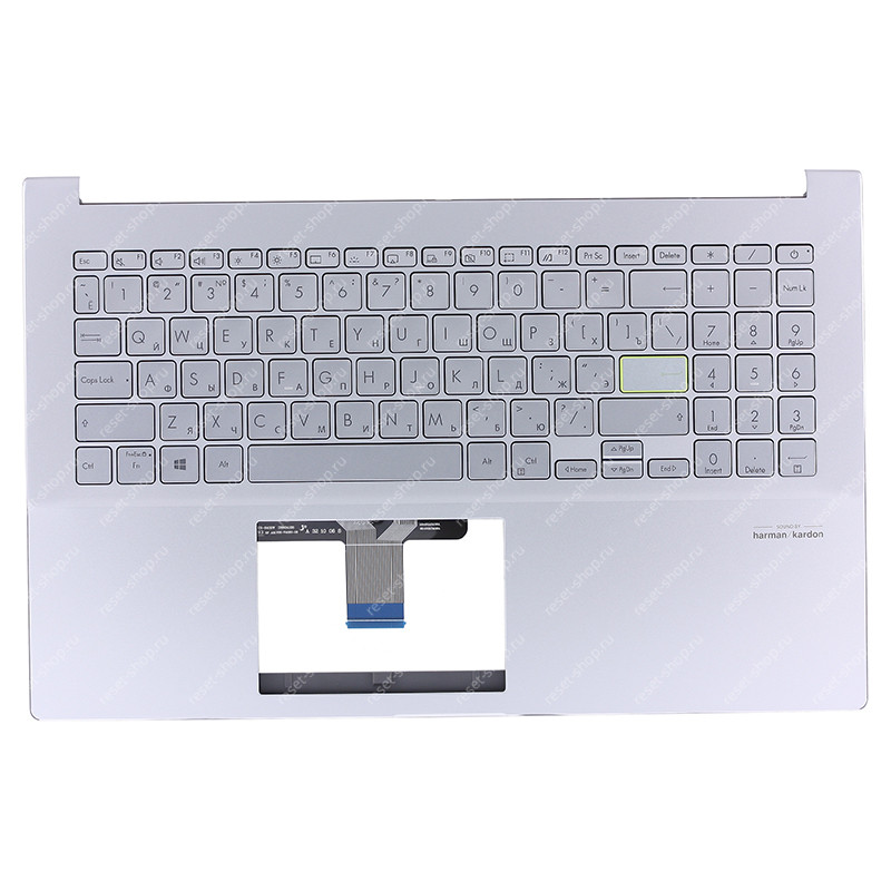 Клавиатура для ноутбука ASUS X521FL топкейс серебристый, клавиши серебристые с подсветкой