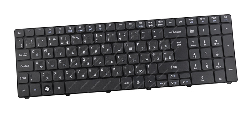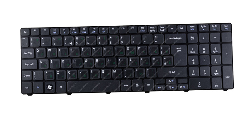 Клавиатура для ноутбука Acer Aspire 5810 оригинальная черная RU шрифт зеленый